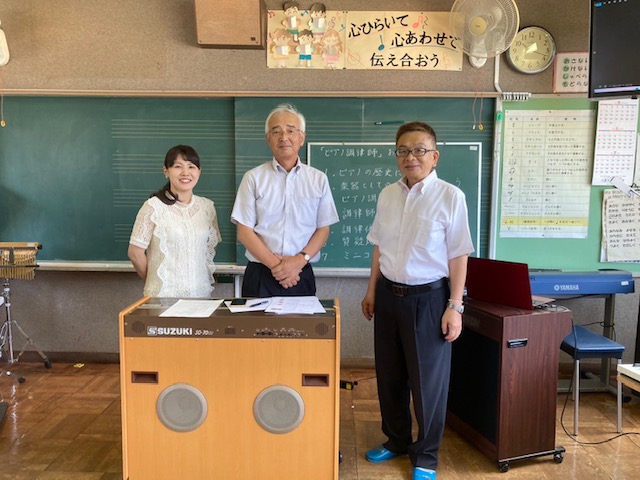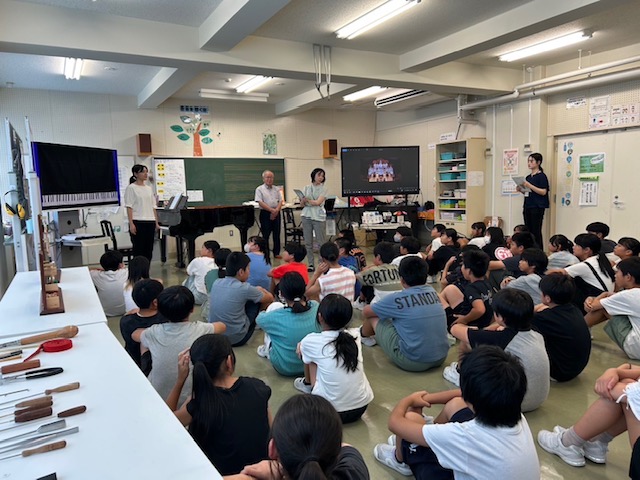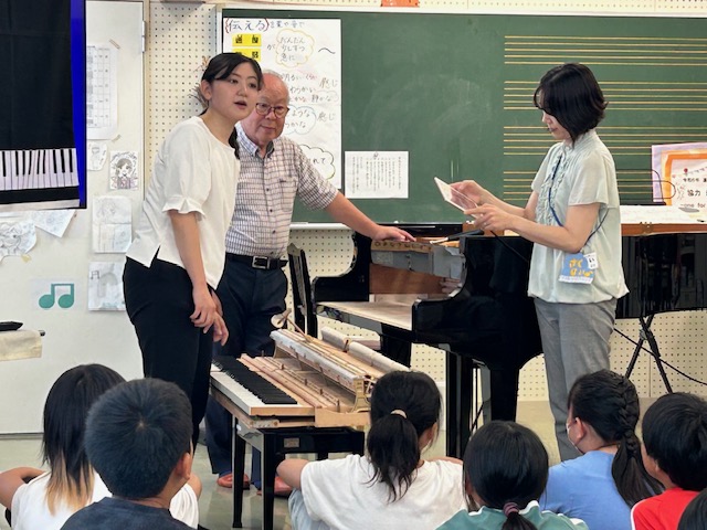 90分授業で、前半はピアノの歴史や構造の講義と調律体験、後半はDVD鑑賞と坂口先生のコンサート、という構成です。