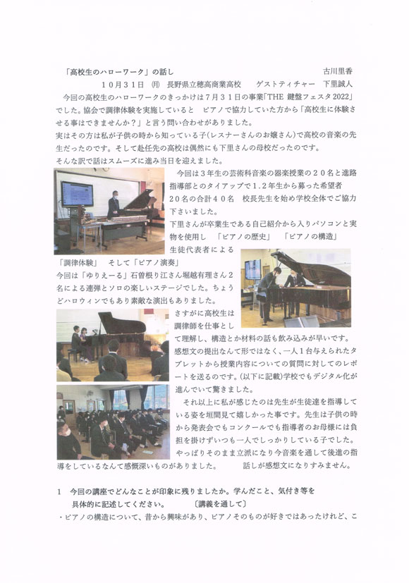秋の研修会 世界を駆け巡るTopチューナーの仕事をみる!カワイ編 2022年12月08日(木)23時23分