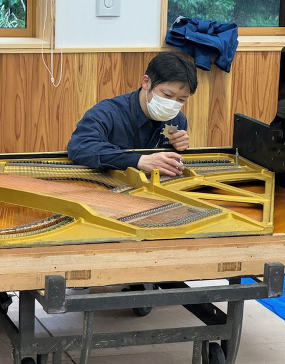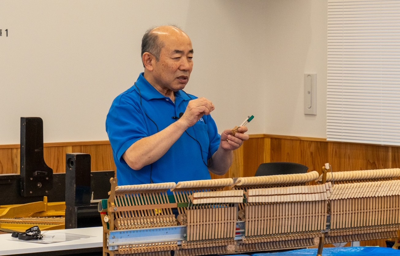 今回は研修局全国統一企画研修会講師を務める小野哲氏(小野ピアノ工房)を招聘し、小野氏のお弟子さんであられる大平氏、進藤氏もアシスタントとして帯同されていらっしゃいました。