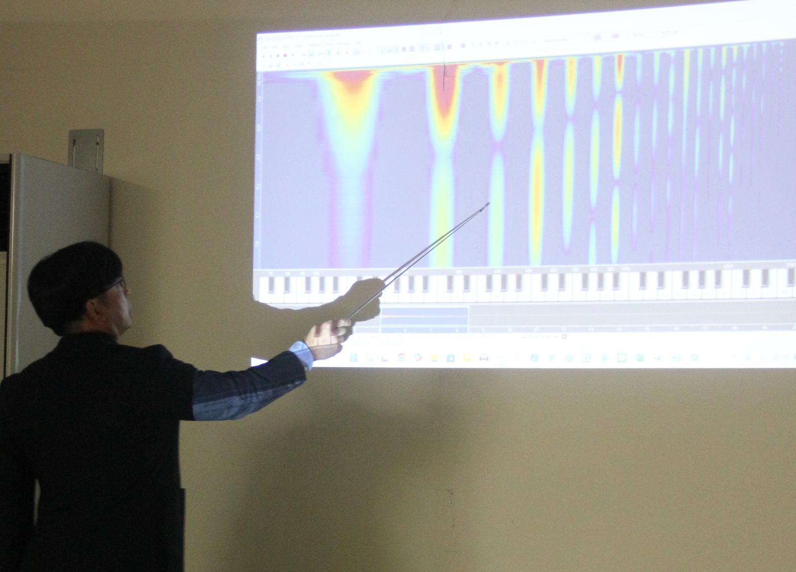 今年度2回目となる技術研修会に、鶴田圭寿氏をお迎えし、整音を施すと倍音がどのように変化するのかを可視化し、分析するという内容でした。