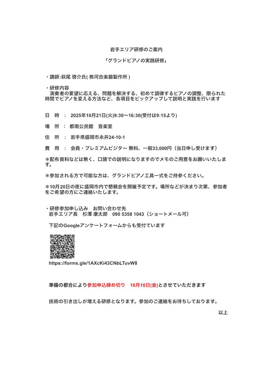 2025年度 岩手エリア研修のご案内 2025年09月10日(水)08時24分