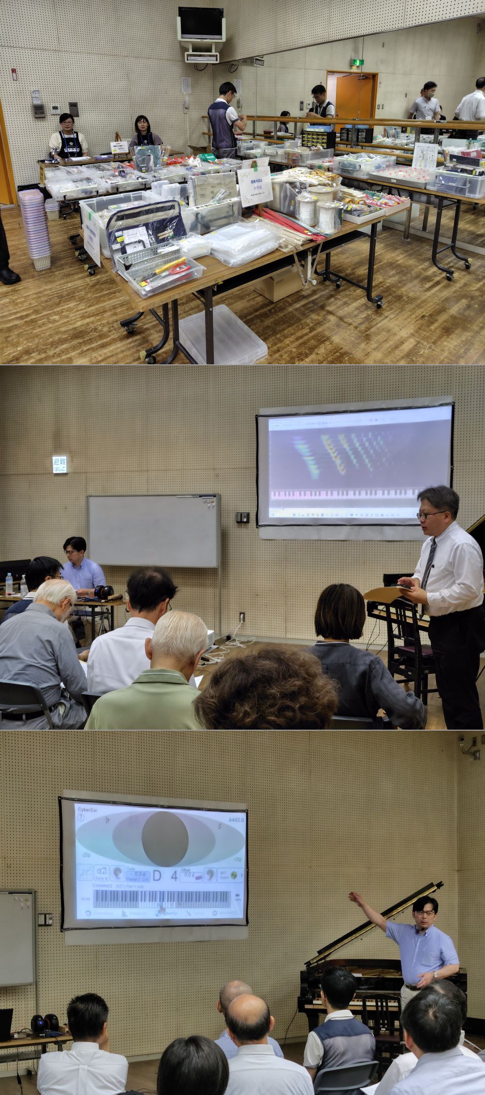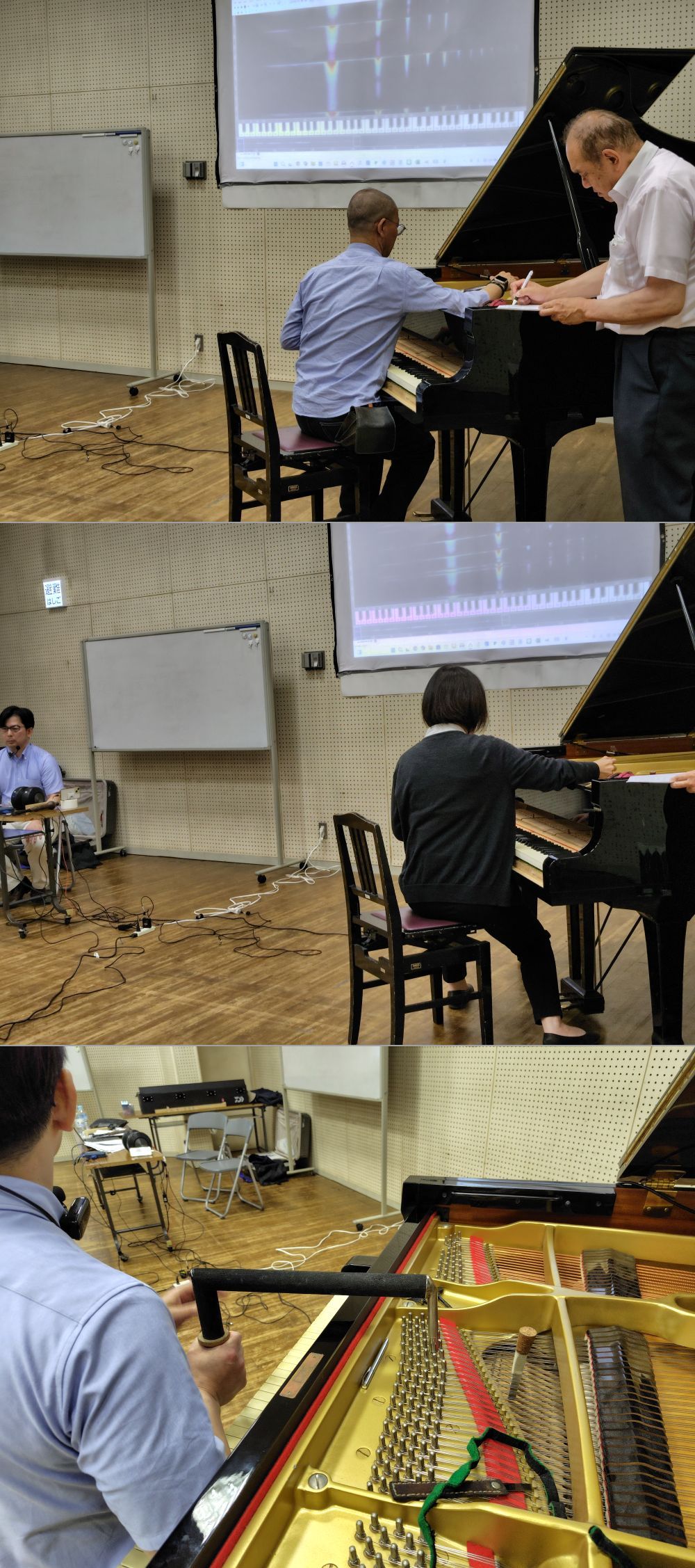 参加者によるユニゾン合わせでは立って操作、座って操作、チューニングハンマーの持ち方、ピンへの挿し込角度等、各々様々でした。