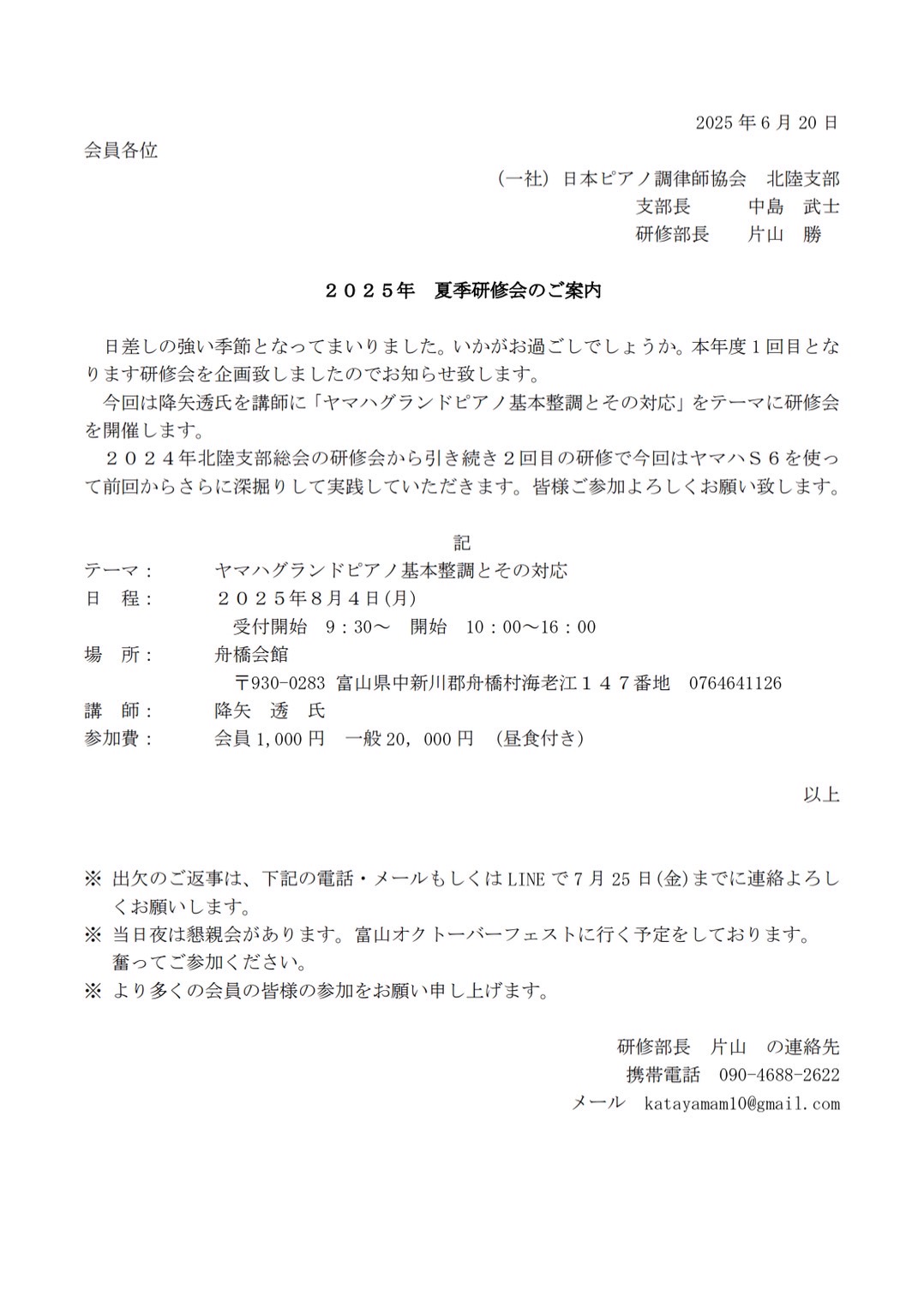 北陸支部今年度の第1回技術研修会を開催いたします。詳細は以下のとおりです。今回は静岡支部より降矢透氏を招きGPの基本調整・その実際と対応のお題目となりました。例年他支部からの参加も有り盛況な研修会となっております。スケジュールが合えばどしどし参加頂けると幸いです。