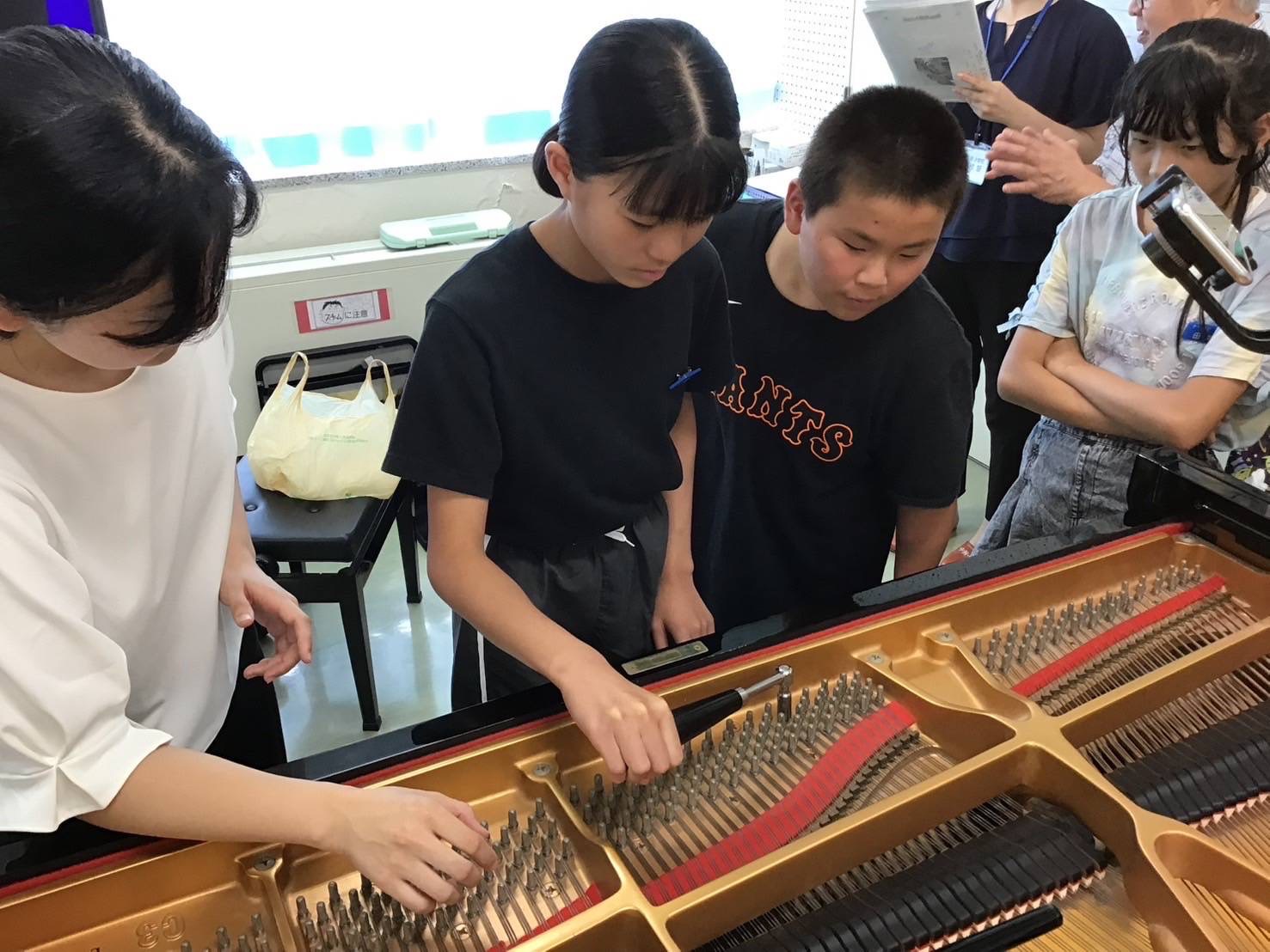 音楽の歴史や音楽家とピアノの関わり、ピアノ演奏、調律体験と70分に渡って勝木氏の分かりやすい授業が展開しました。