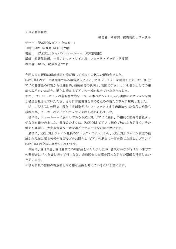 信越支部ミニ研修会「FAZIOLピアノを知る!」 2023年04月09日(日)20時11分