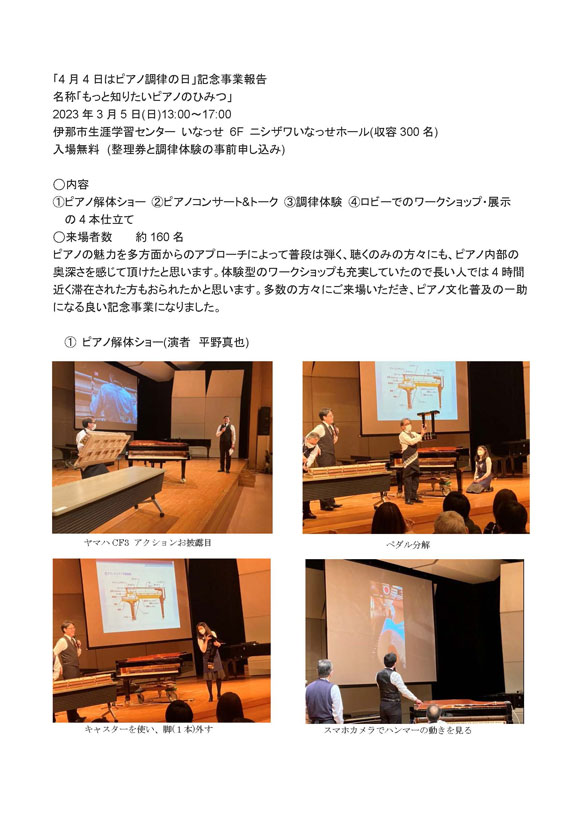 「4月4日はピアノ調律の日」記念事業 もっと知りたいピアノのひみつ 開催報告 2023年04月15日(土)17時48分