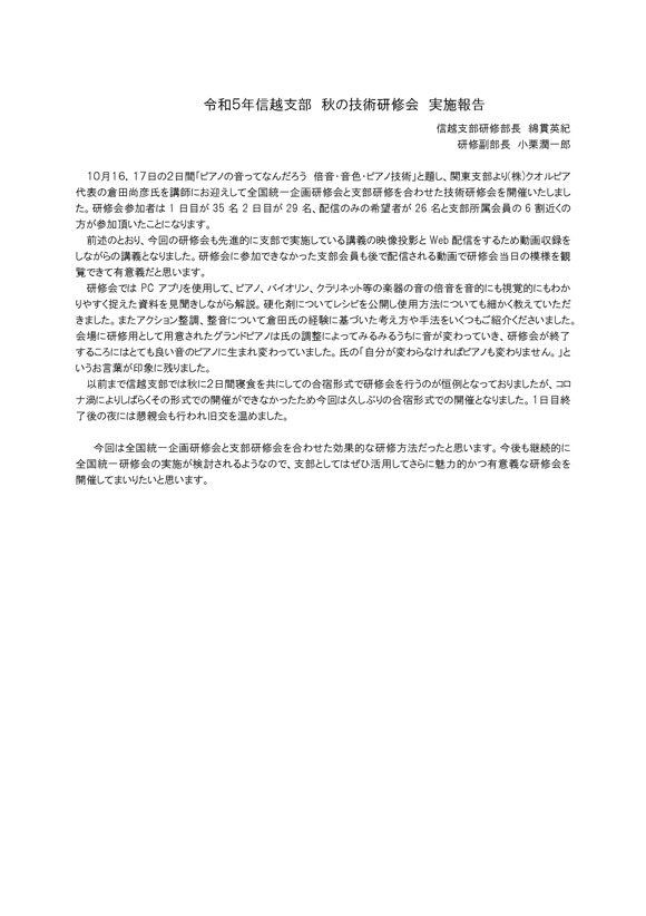 信越支部 秋の技術研修会実施報告 2023年11月04日(土)23時07分