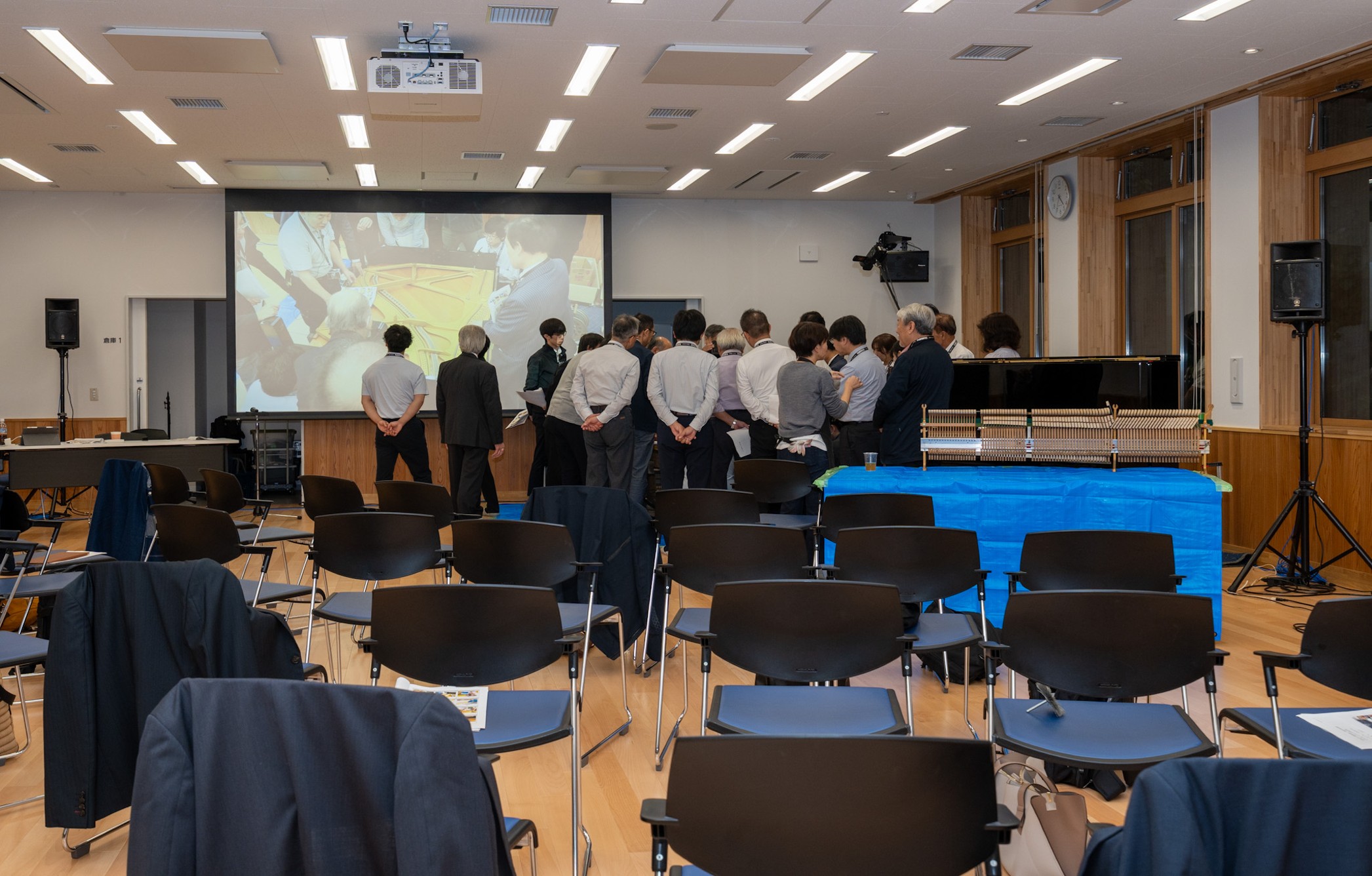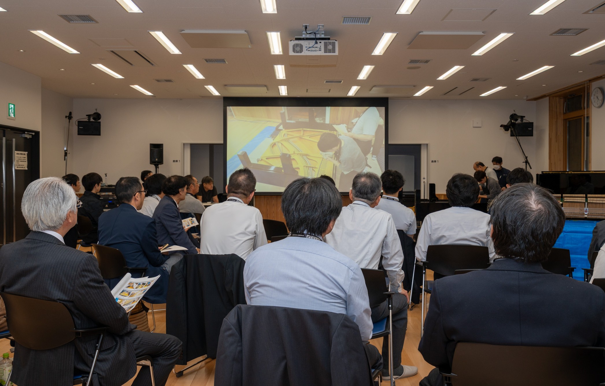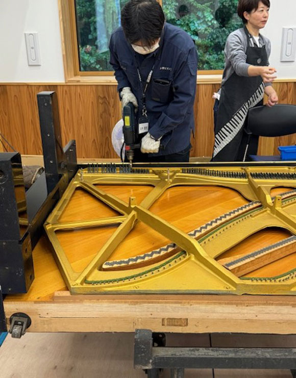 今回は研修局全国統一企画研修会講師を務める小野哲氏(小野ピアノ工房)を招聘し、小野氏のお弟子さんであられる大平氏、進藤氏もアシスタントとして帯同されていらっしゃいました。
