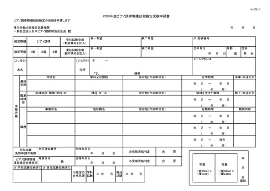 2026年度ピアノ調律職種技能検定 (応募要領)